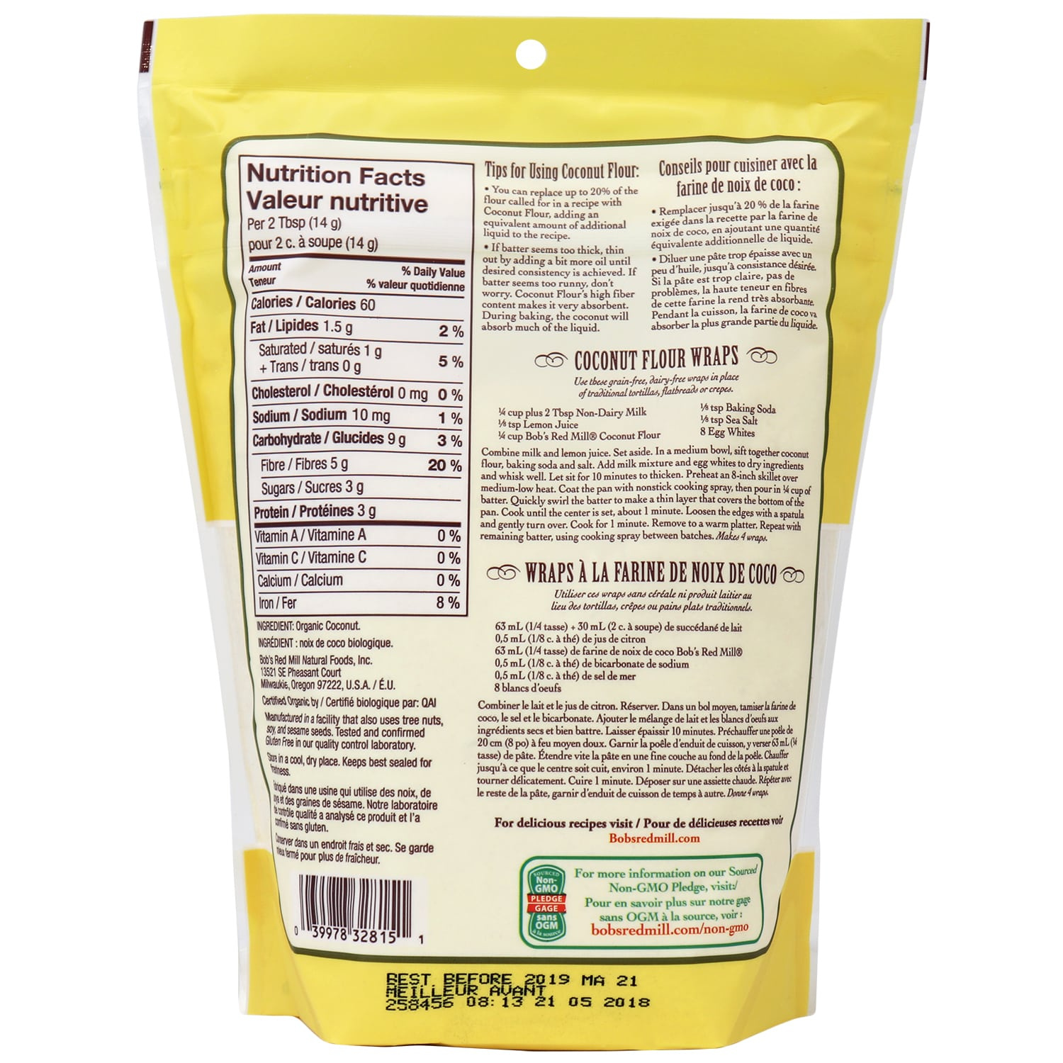 Organic coconut flour is a delicious, healthy alternative to wheat and other grain flours! Ground from dried coconut meat, coconut flour is high in fiber, low in carbs, and gluten-free. A single serving of coconut flour delivers 5 grams of fiber with only 8 grams of carbs--making it ideal for those following the paleo diet, keto diet, or those who need to be carb conscious. Coconut flour blends seamlessly into sweet or savory baked goods with its light coconut flavour. Coconut flour can replace up to 20% of the flour in a recipe, but you will need to add an equal amount of liquid to compensate. Use it as a coating for proteins, in cake batters, for bread, cookies, and more!Â