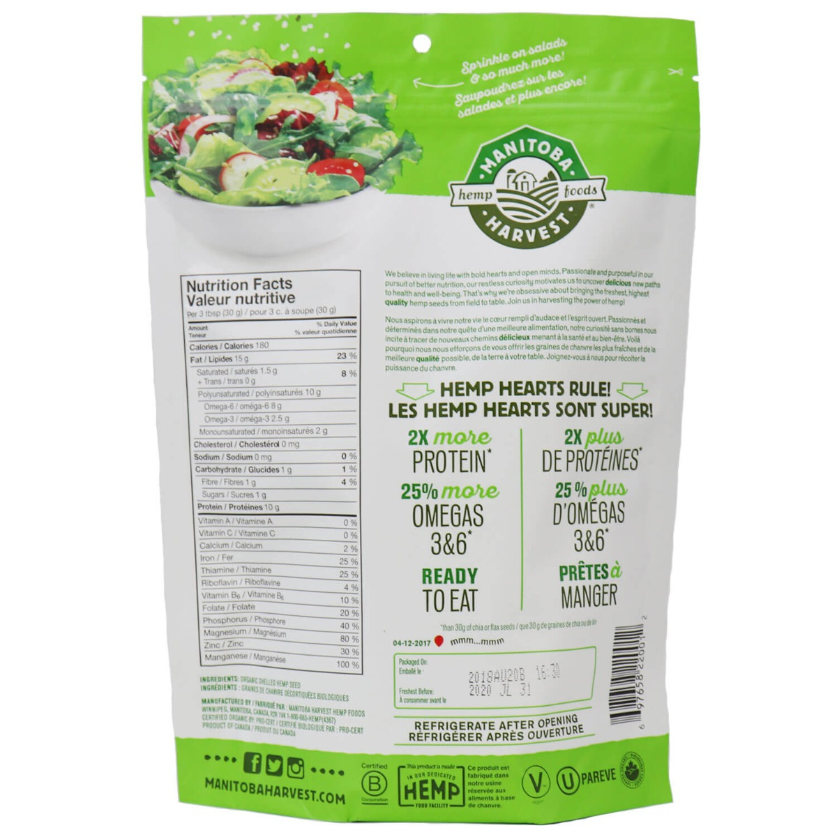 These versatile organic seeds will add nutrition and a rich nutty taste to any meal! Sprinkle Hemp Hearts on salad, cereal, or yogurt, or blend them into smoothies.