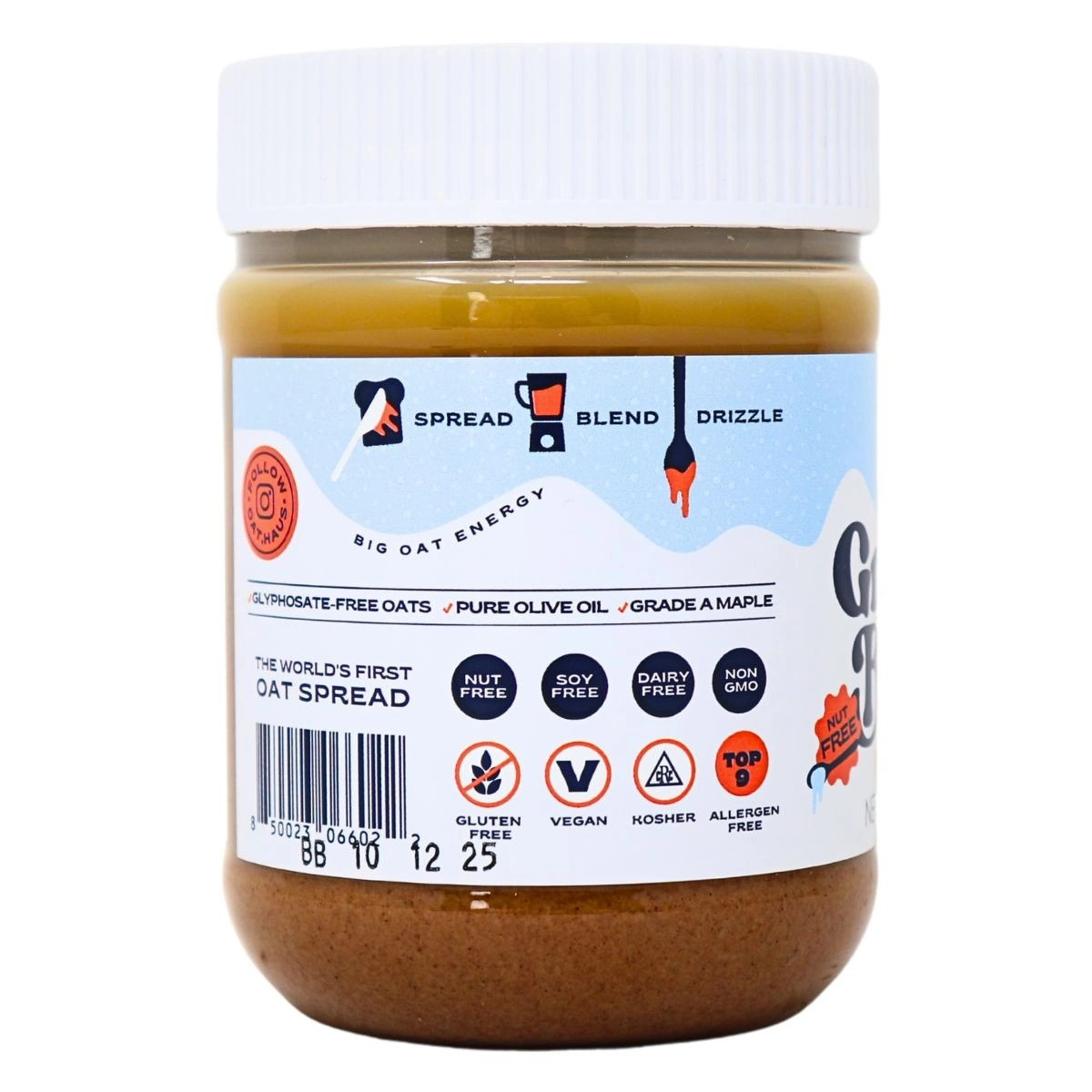 Life just got better with Oat Haus Original Granola Butter! This allergen-free spread has changed the way we eat forever! Made with gluten-free oats and a blend of heart-warming organic spices, this vegan spread tastes just like cinnamon graham crackers. Rich in plant-based protein and fibre, this delicious spread is perfect for baking, drizzling, or eating by the spoonful. With Oat Haus Original Granola Butter, life is good!