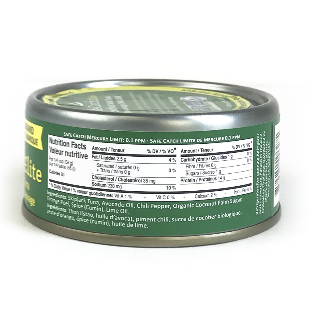 The Safe Catch Seasoned Elite line pairs our lowest mercury tuna (Elite) with all natural premium ingredients. Chili Lime is seasoned with all natural chili pepper, orange peel, cumin, lime, organic coconut palm sugar, and a touch of avocado oil!