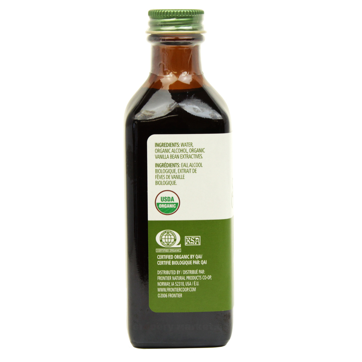 Organic Vanilla Bean Extractives In Water, Organic Alcohol.