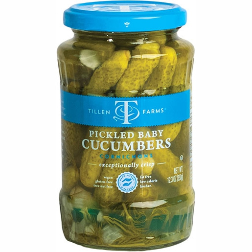 Tillen Farms Pickled Baby Cucumbers (also known as Cornichons) may look like pickles, but they are not. Instead they are a species of cucumbers that produces a smaller fruit. Hand-picked and hand-packed at one to two inches in length, they are perfectly pickled with fresh onions and fresh garlic, and are incredibly crisp.